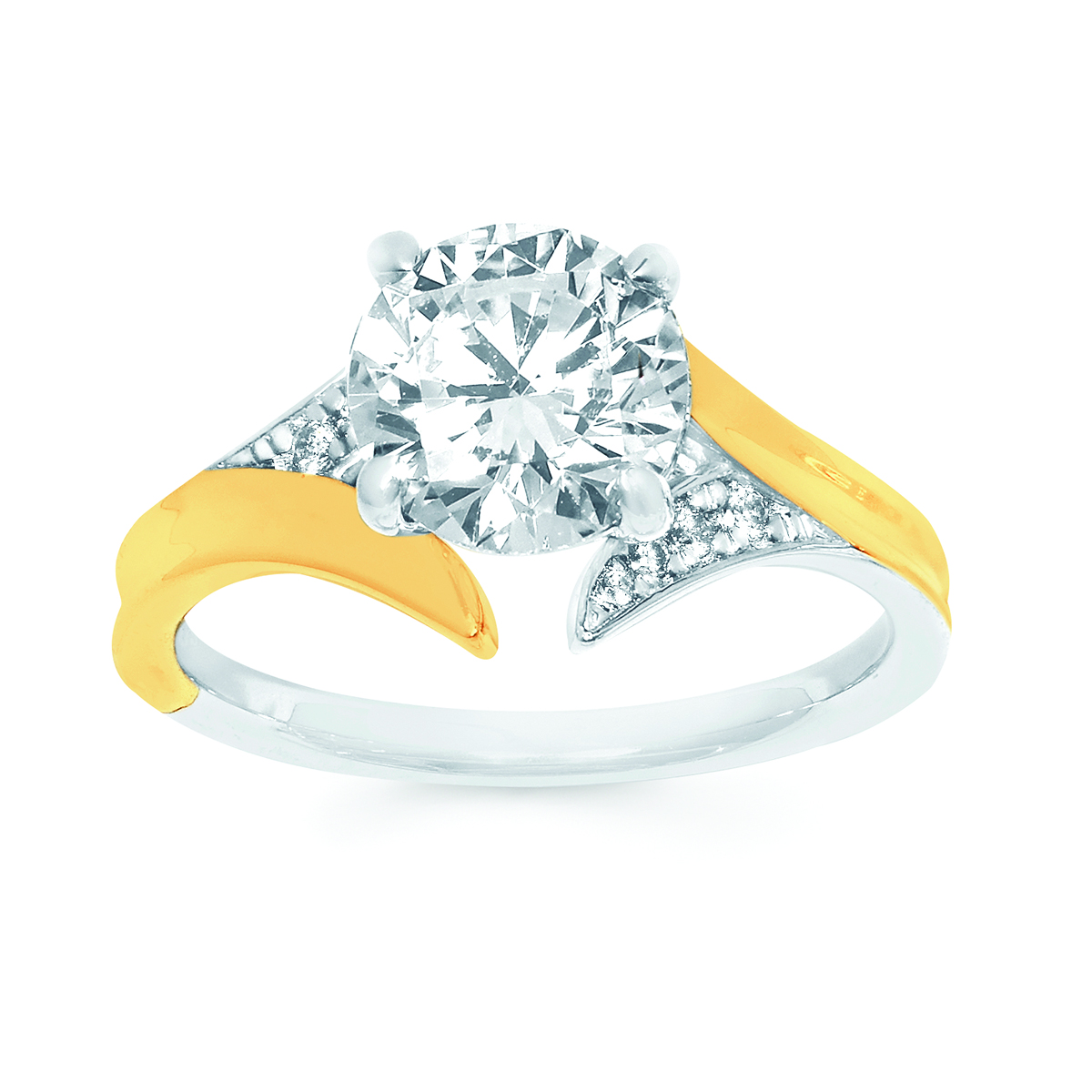 Engagement Ring Modern Bridal: 0.06 Ctw. Diamond Semi Mount shown with 2 Ct. Round Center Diamond in 14K Gold
